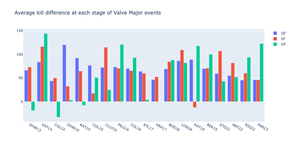 | The number of maps played in Grand Finals at Valve Major events | Kill differential during Grand Finals at Valve Major events | Round differential during the Grand Finals at Valve Major events |