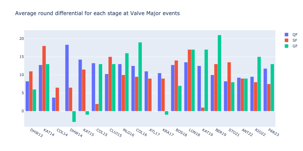 Some grand finals even managed negative round differentials - the loser winning more rounds across the series.