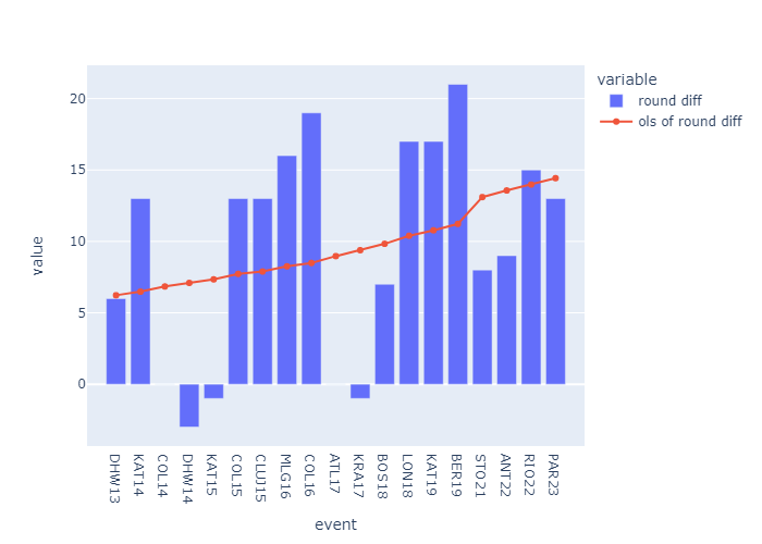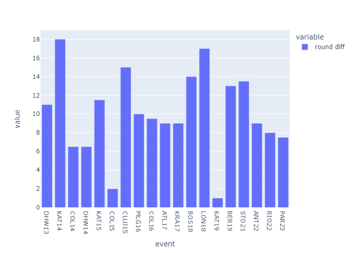 | Round diff average per stage before 2018 | Round diff average per stage after 2018 |
