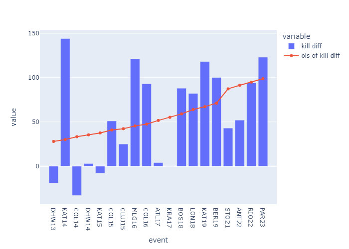 | Kill diff average per stage before 2018 | Kill diff average per stage after 2020 |