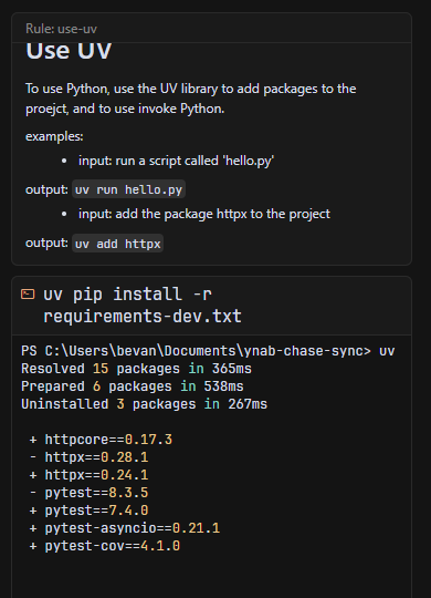 - I asked it to use uv to do package management and program invoking. It sometimes did.